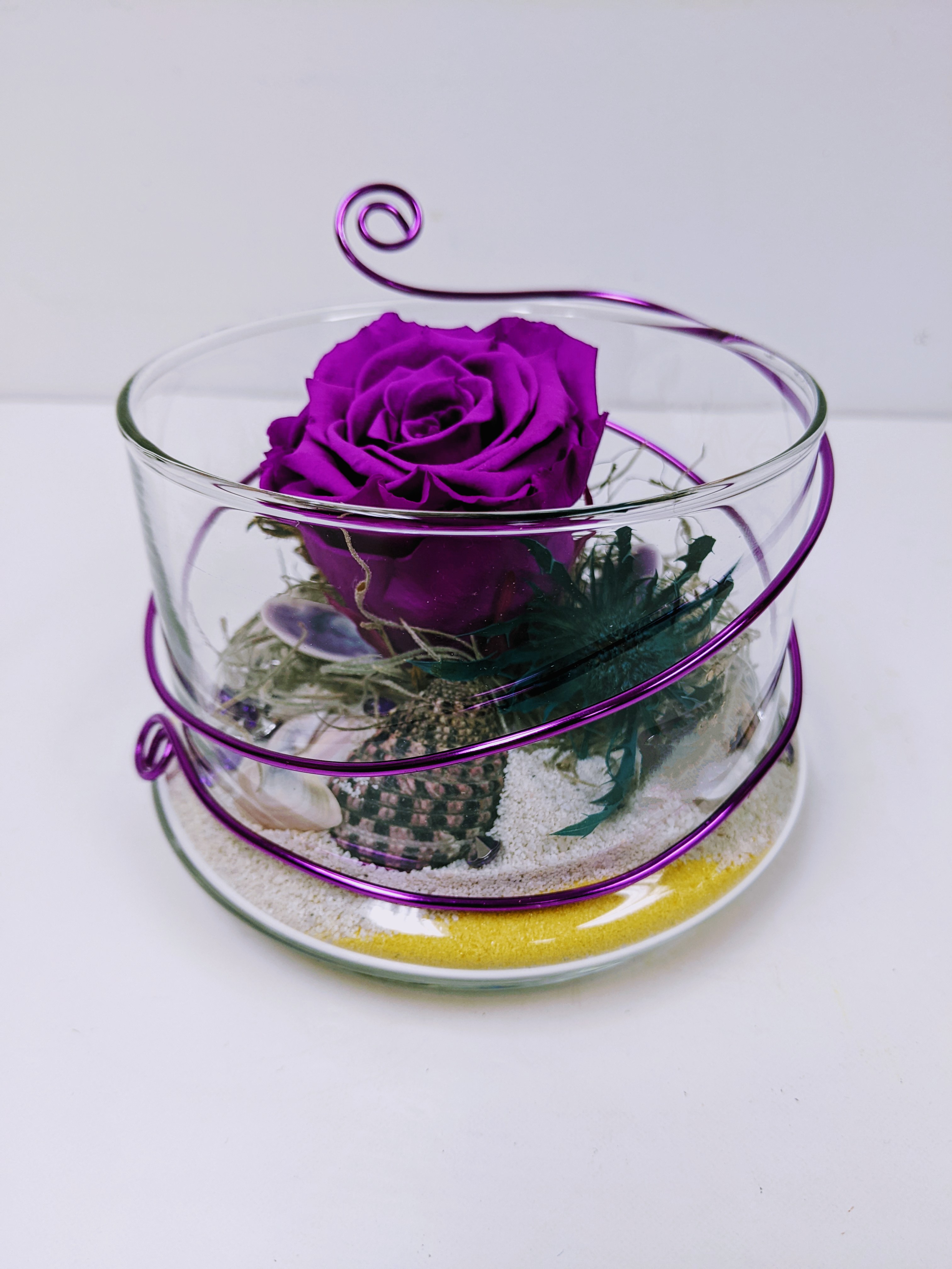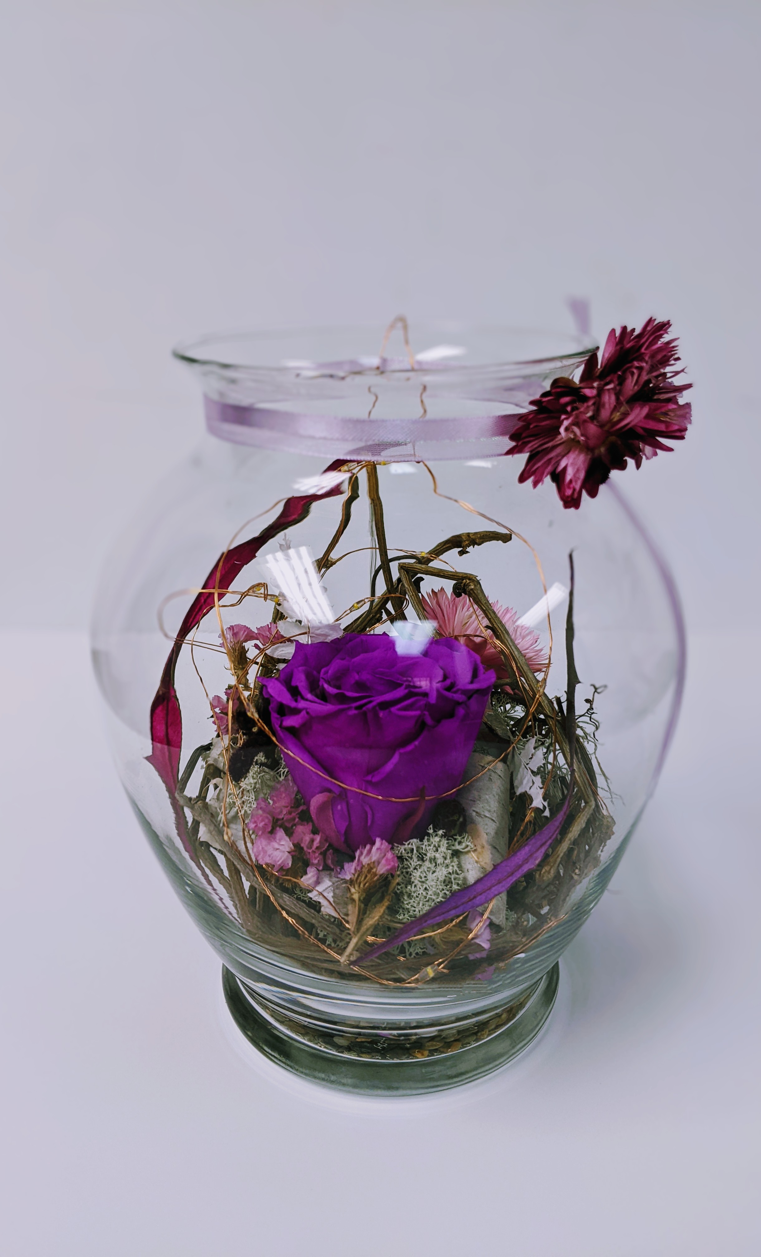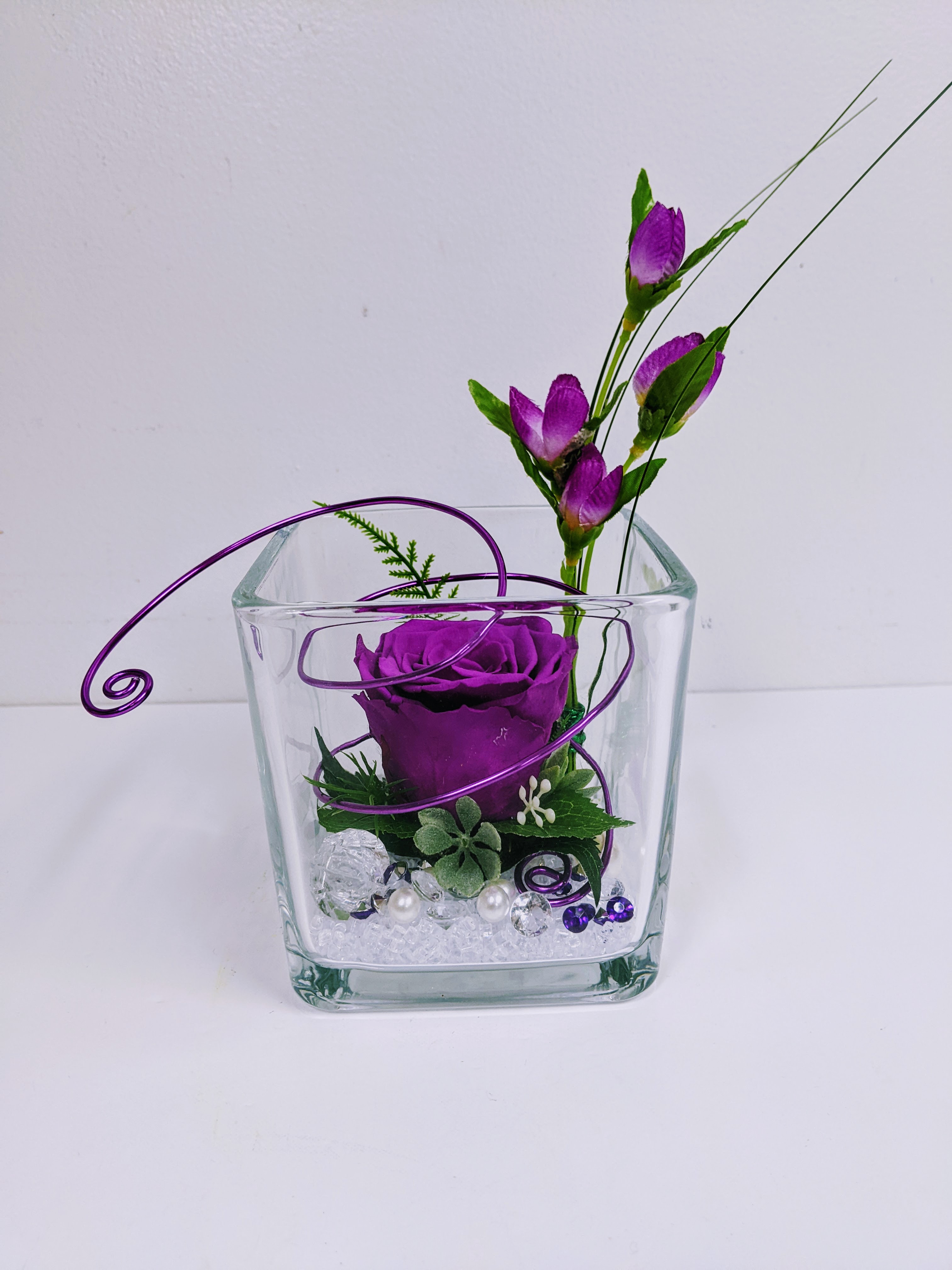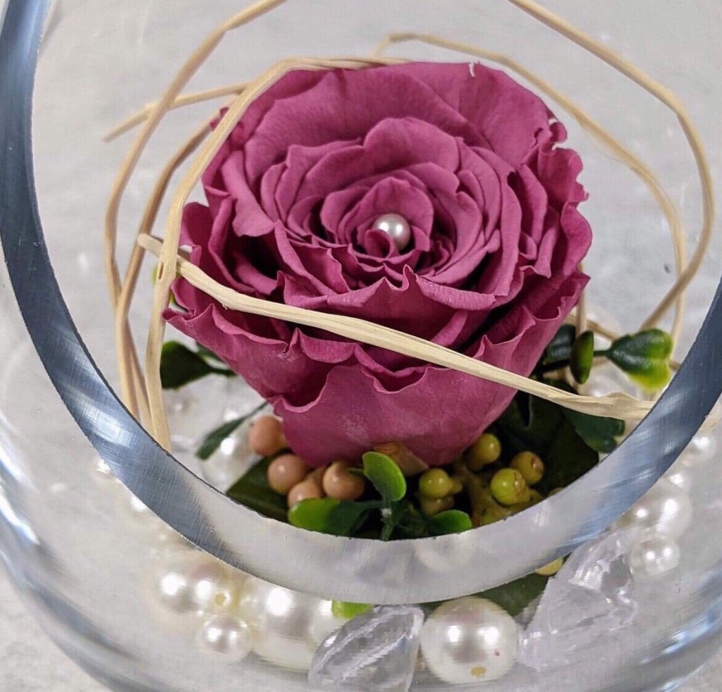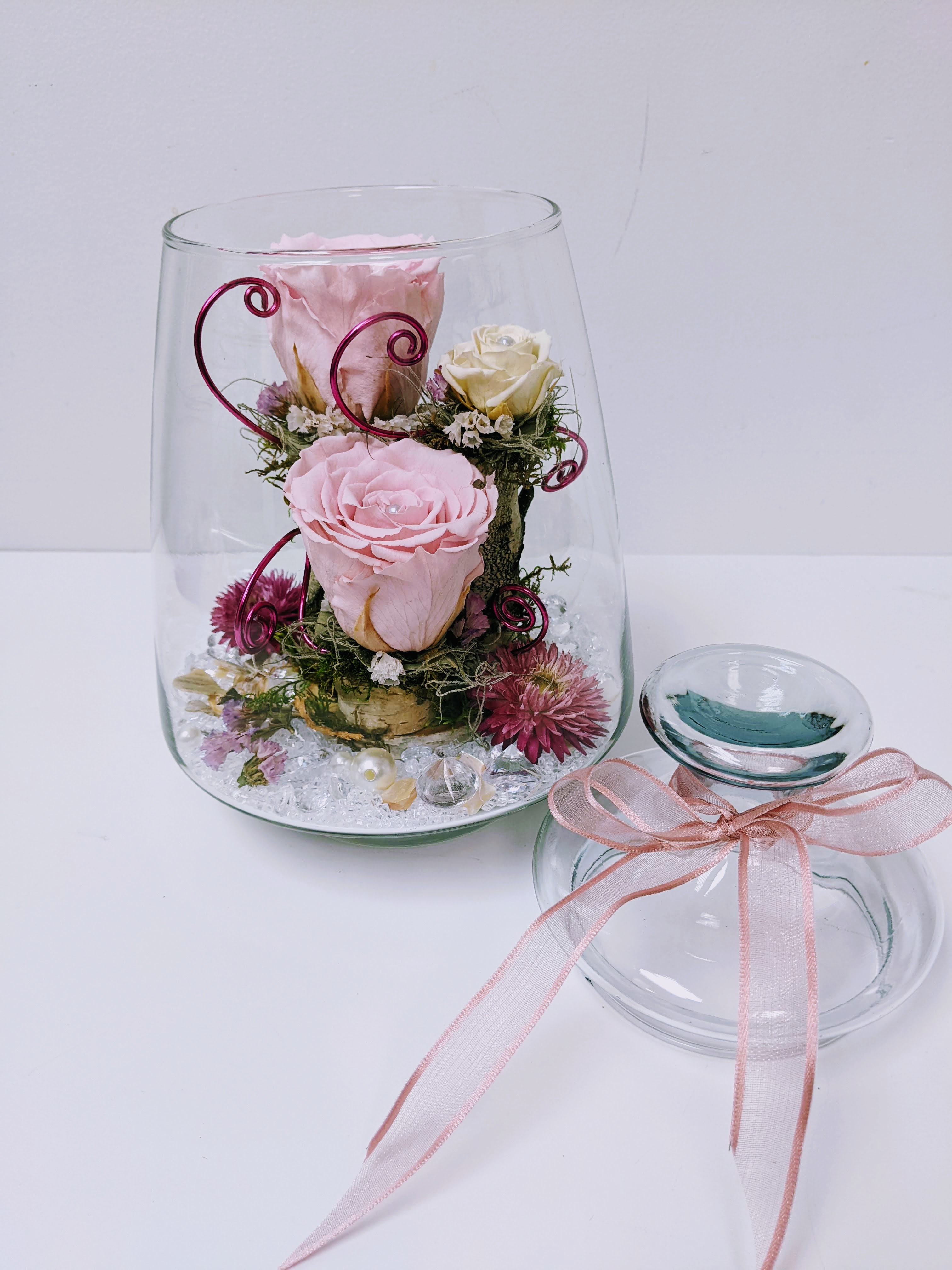MONTAGE ROSE ÉTERNELLE ET FLEURS FRAÎCHES