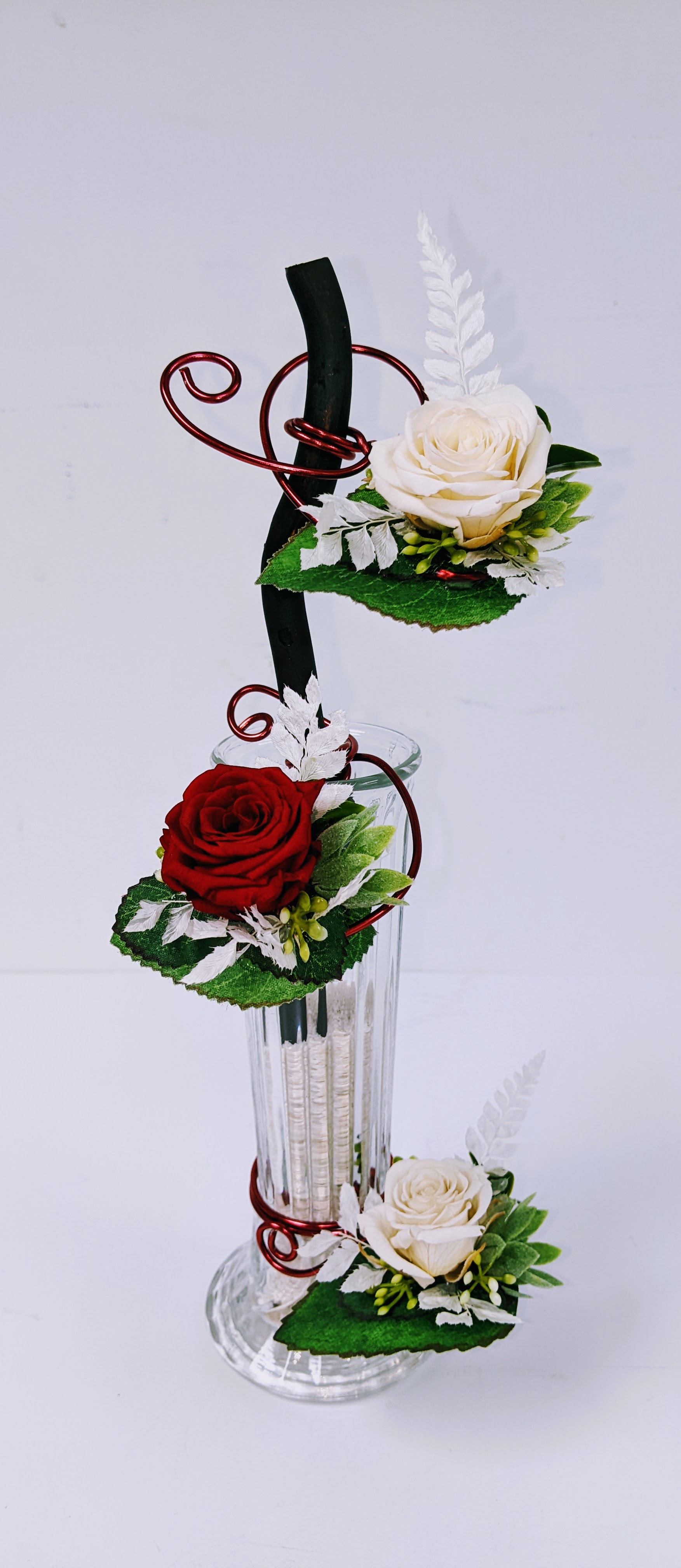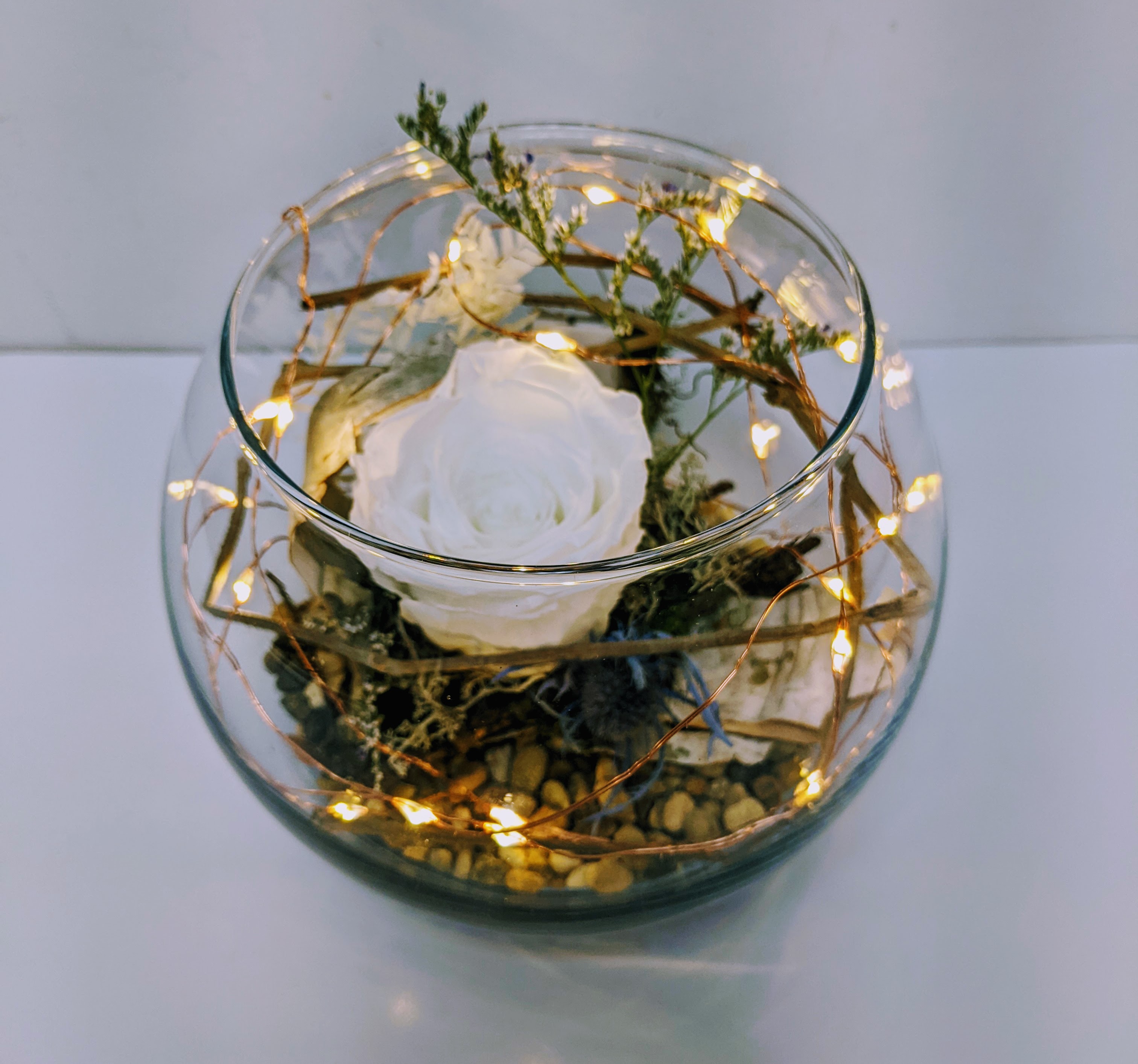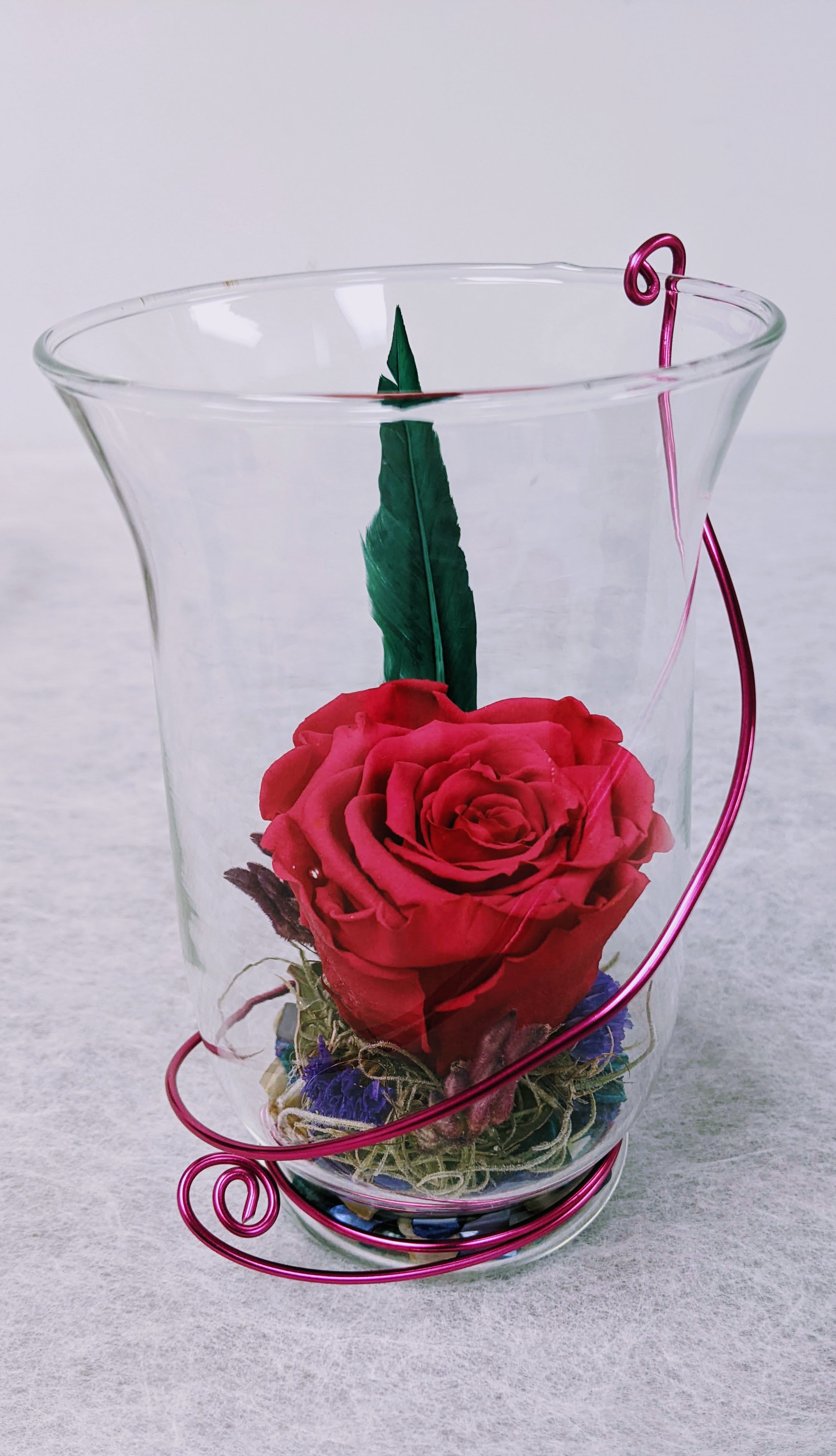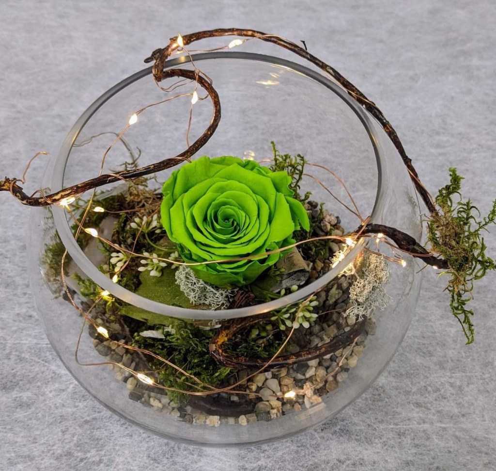 MONTAGE ROSE ÉTERNELLE ET FLEURS FRAÎCHES