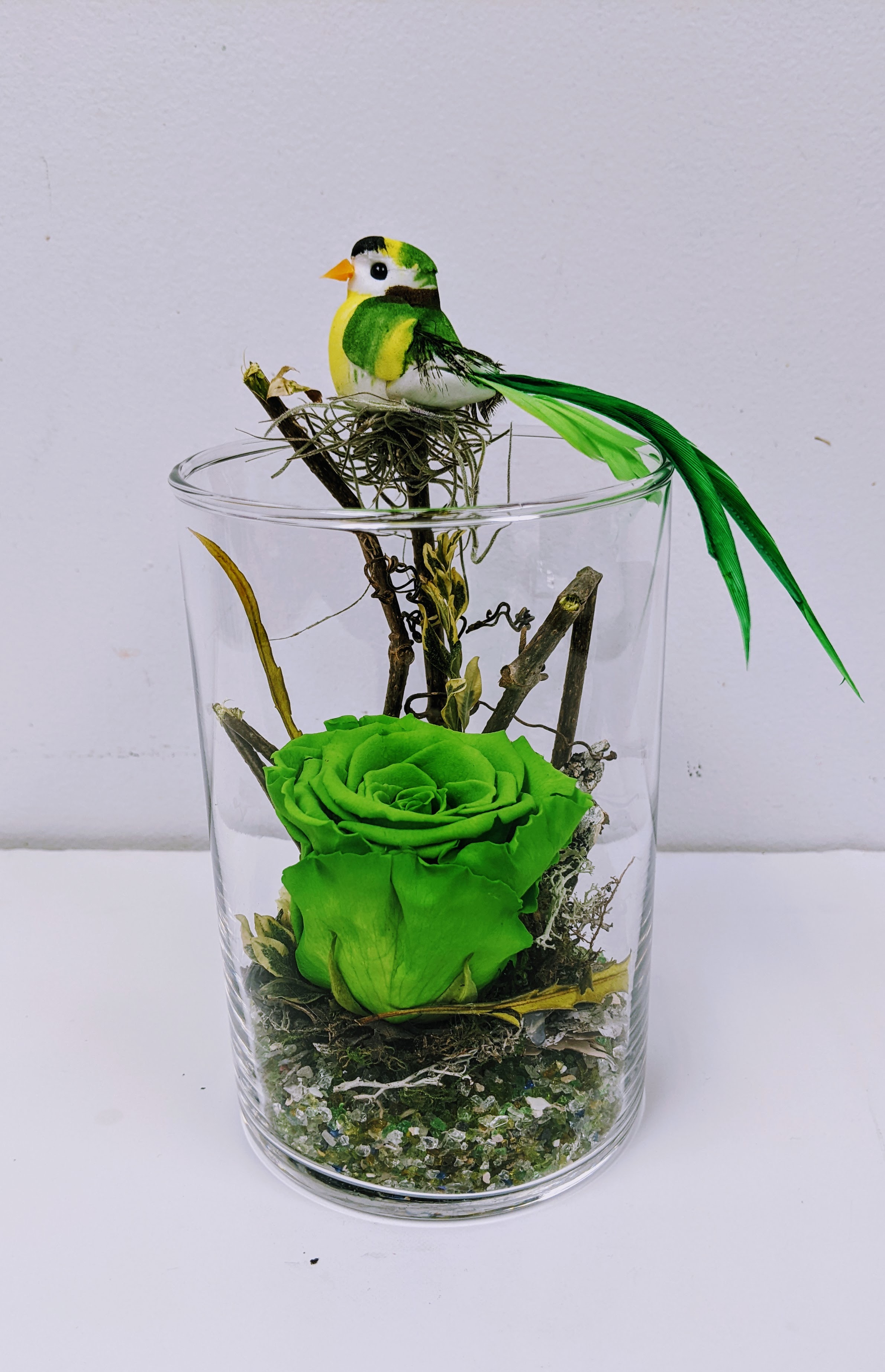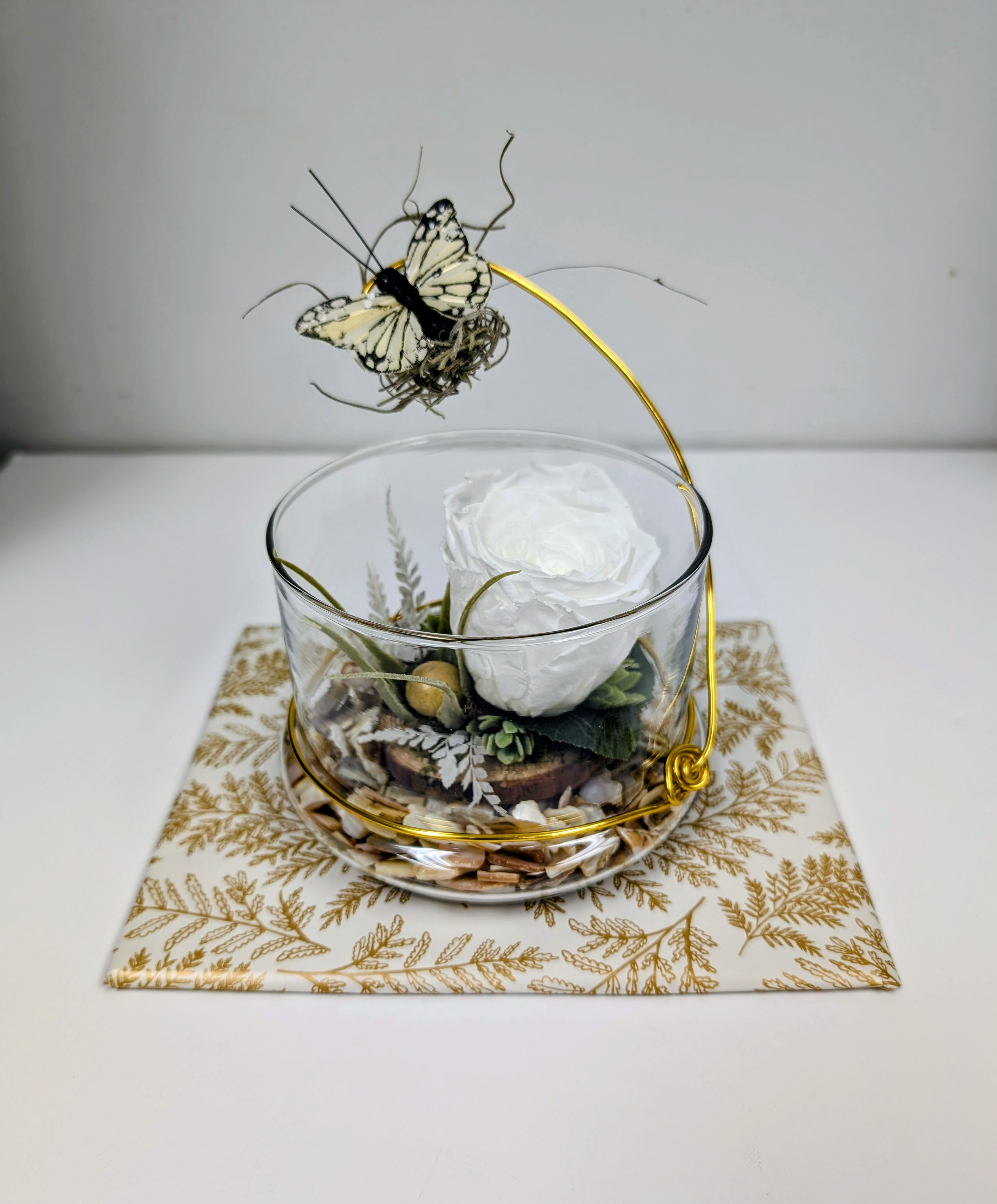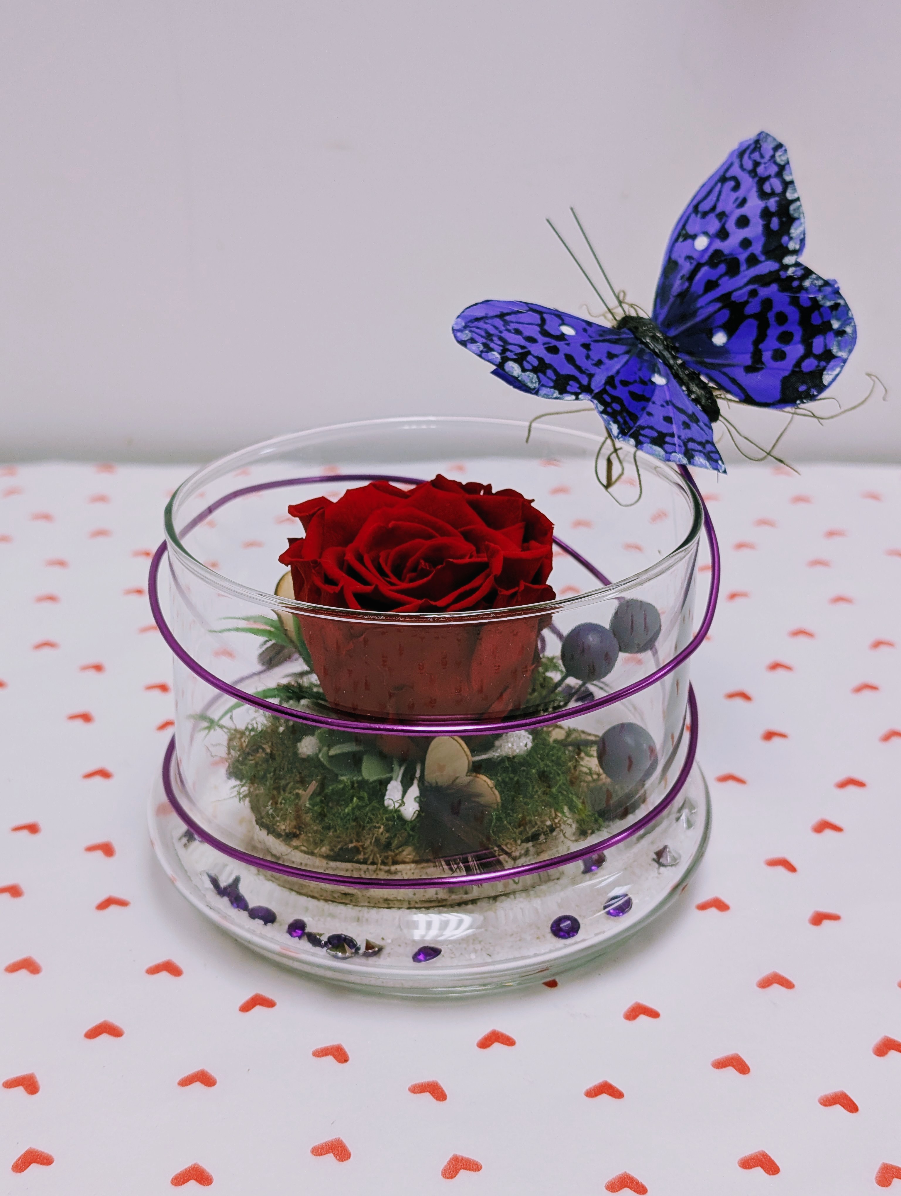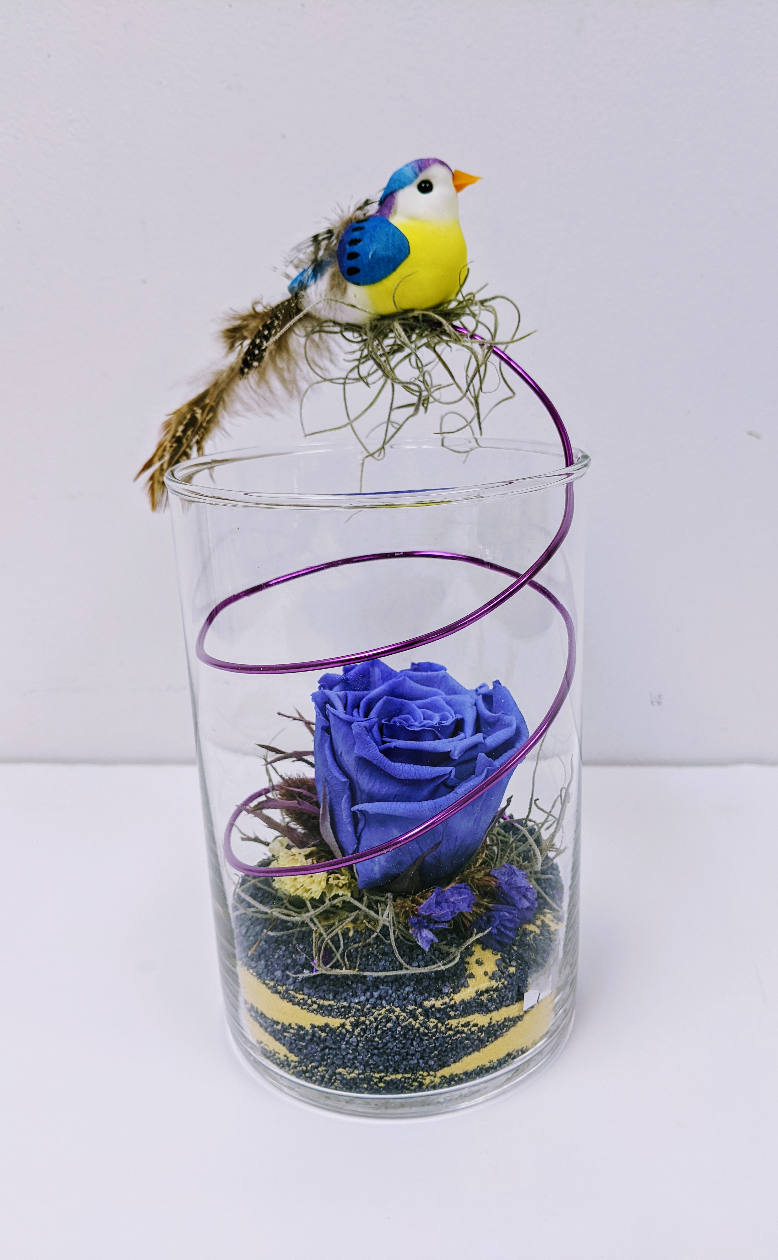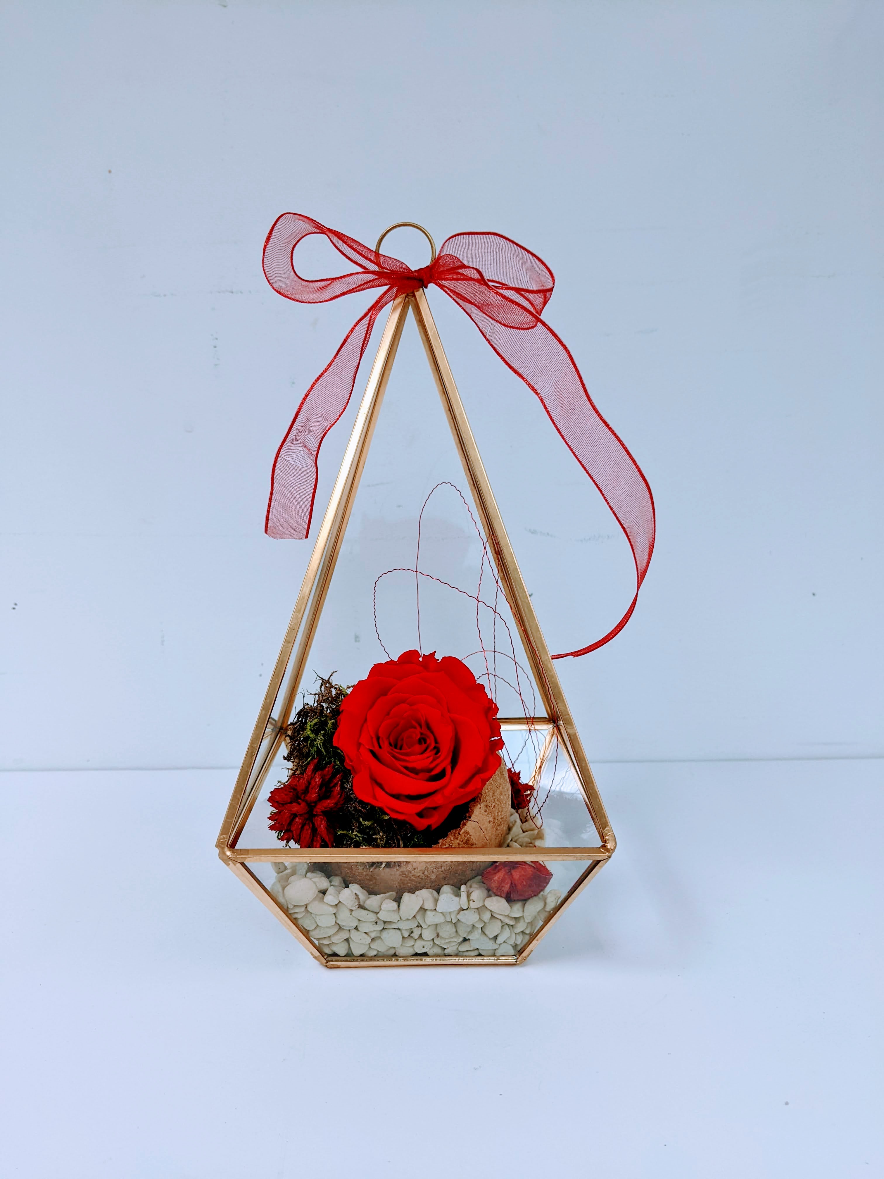 MONTAGE ROSE ÉTERNELLE ET FLEURS FRAÎCHES